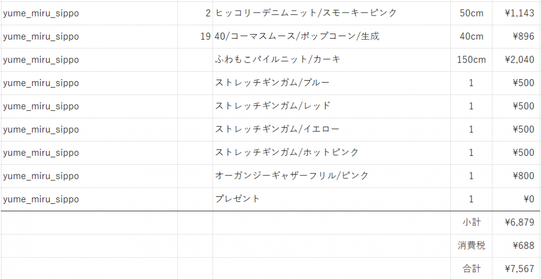 yume_miru_sippo 様ライブ販売会分(10/24)