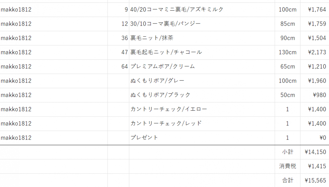 makko1812 様ライブ販売会分(11/21)