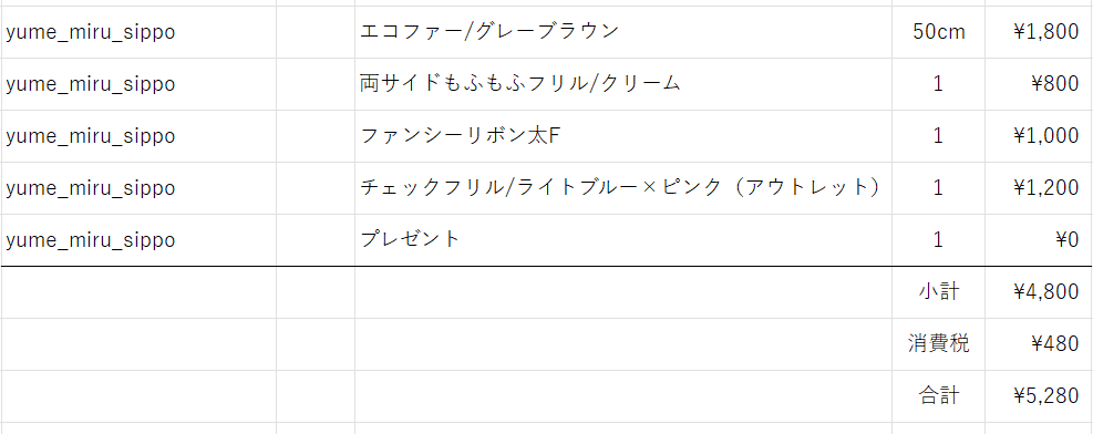 yume_miru_sippo 様ライブ販売会分(12/12)